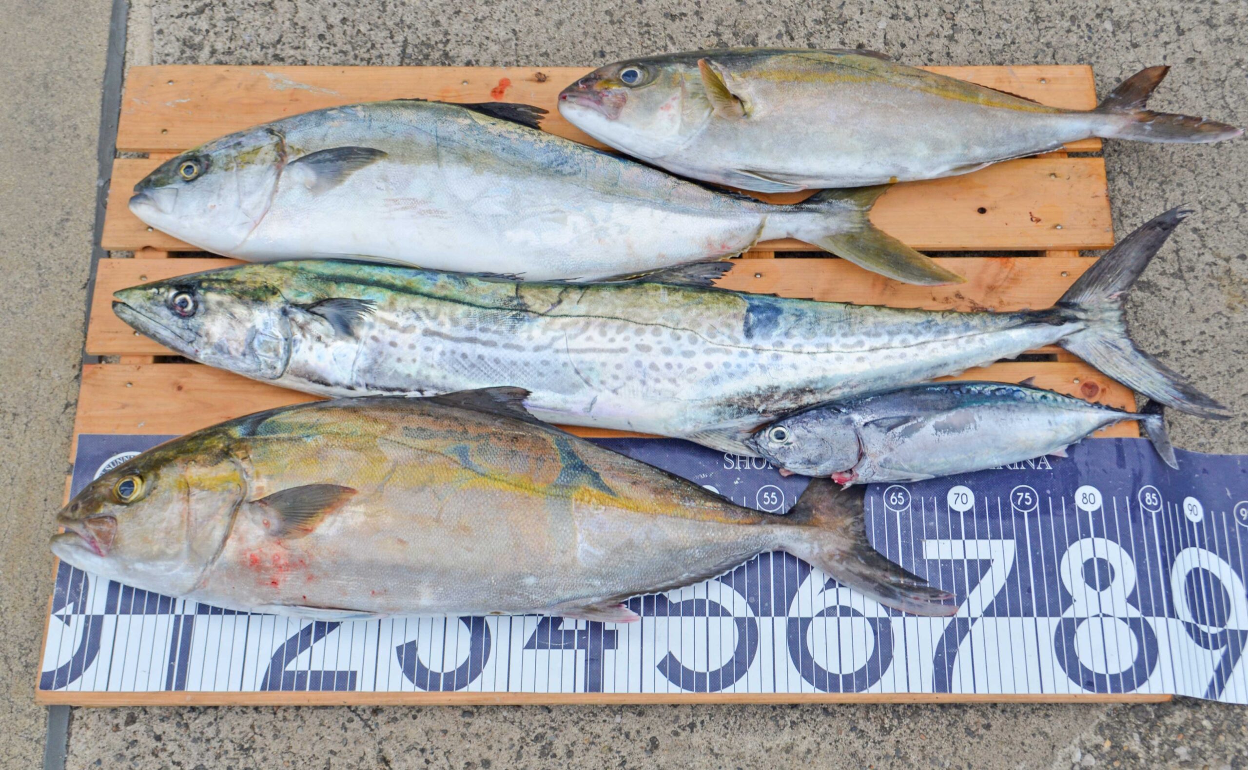 狙いのアジもバッチリ釣り、さらにワラサとサワラもGET!!