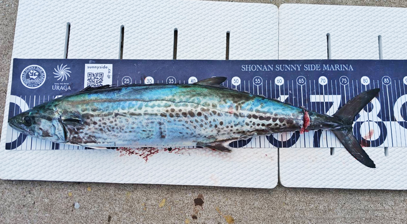大貫沖の水深20mにて、たまたま跳ねていたサワラを発見!!