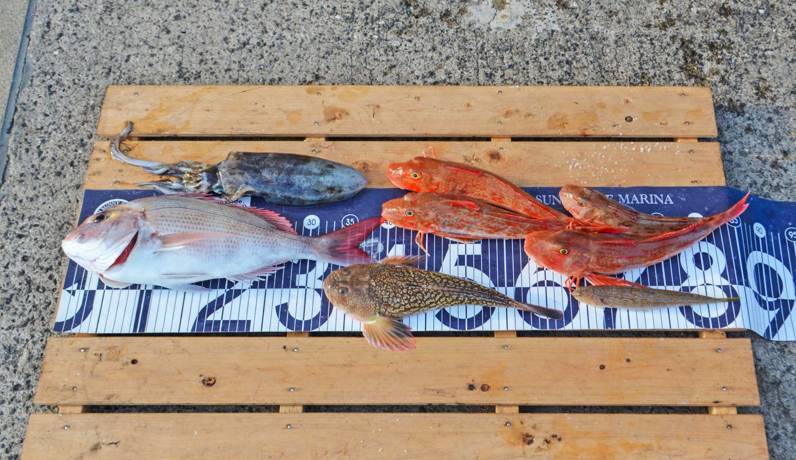 11月7日(金) 中潮 釣行人数2名 【ポイント】 小塚根付近 【水深】 10~15m 【仕掛け】 タイラバ(ヘッド:オレンジ、ネクタイ:オレンジ) 中央の見慣れない魚はミシマオコゼという魚で、なんとも言えぬ愛嬌のあるお顔をしていますo(* ̄︶ ̄*)o 鮮度がよいものはフグのような身質で味もよいらしく、なんといっても肝が絶品なのだとか(*´﹃`*) 一度食べてみたいですね~