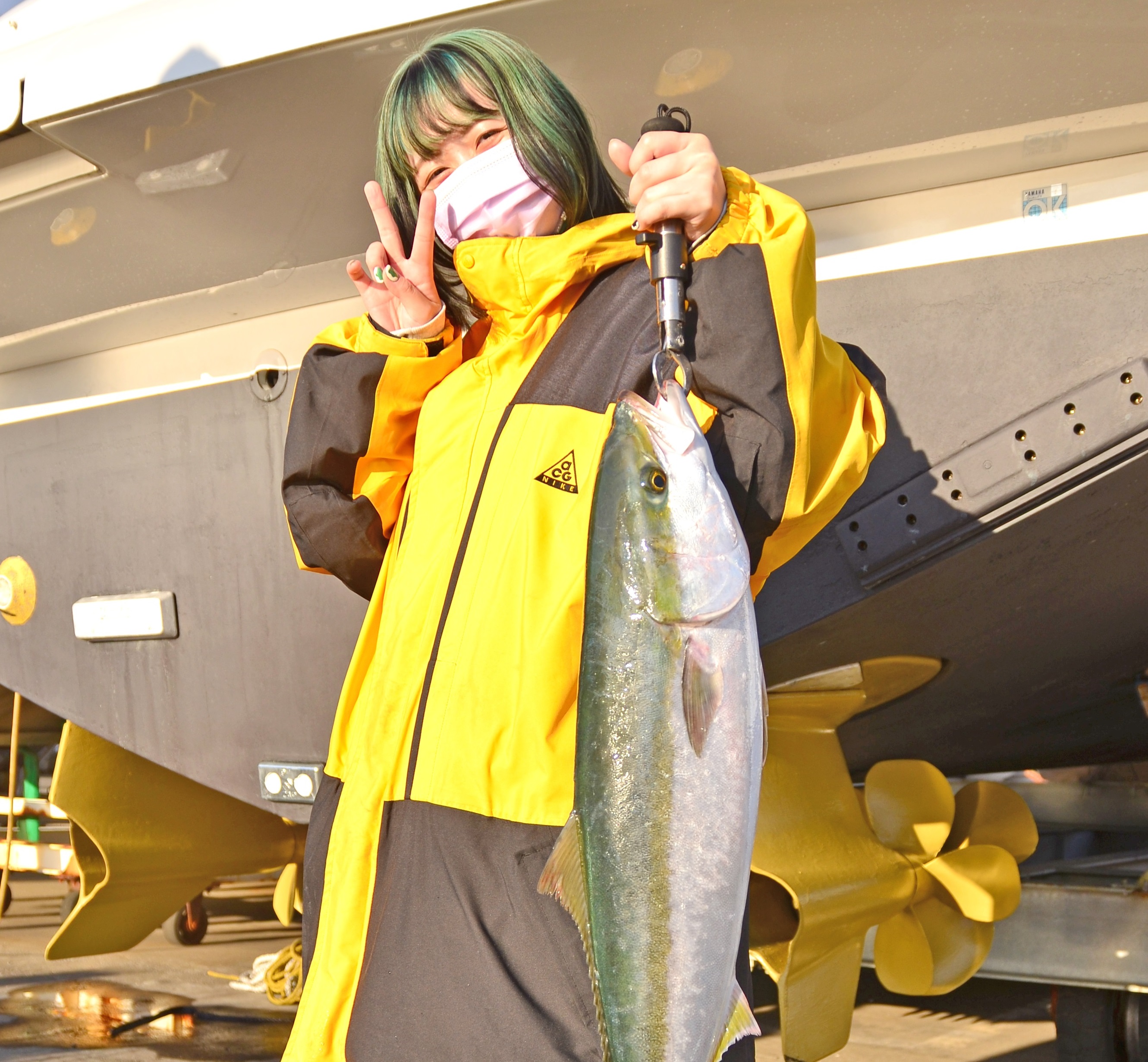 昨年8月に、初めてのジギングでワラサを釣りあげた『持ってる』釣りガール,゚.:。+゚