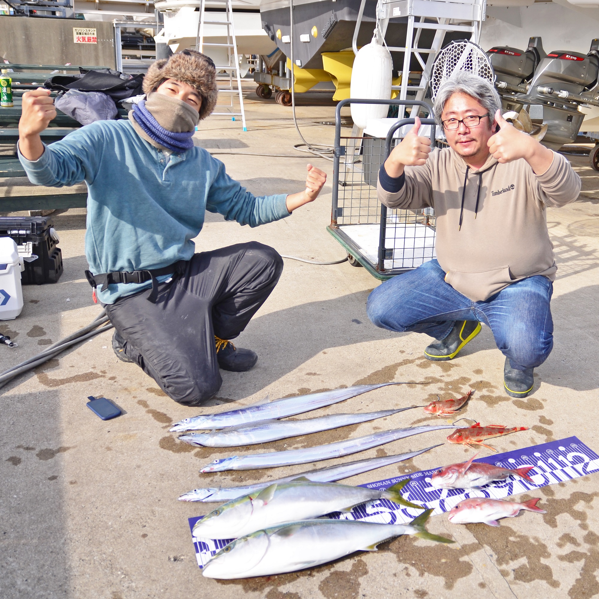 「ワラサでも…。いや、もう何でもいいから釣れたらいいか!笑」と意気込んで出港したMさまペア。