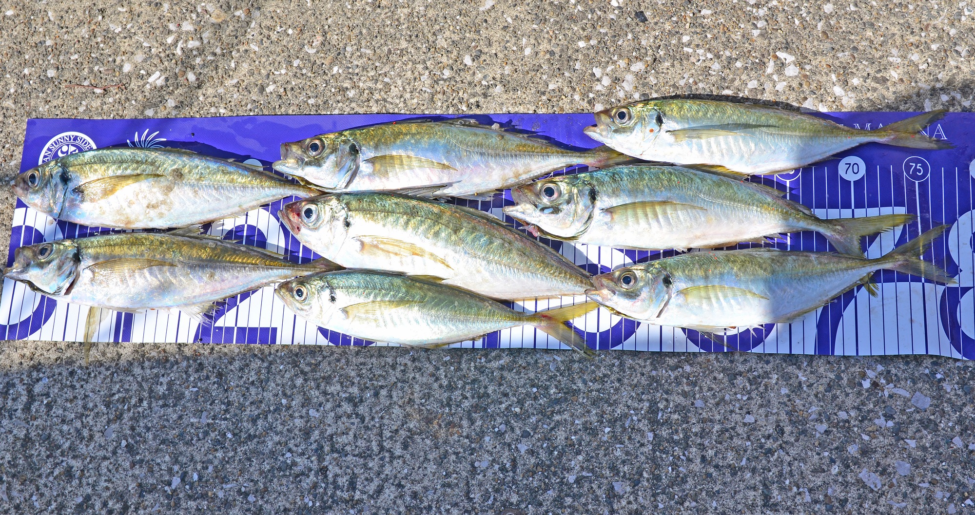 午前中は風を避けられる浦賀湾内でサビキ釣りをし、