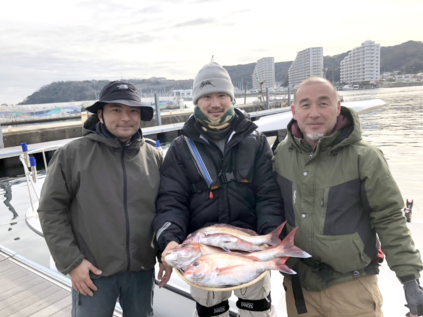 寒い中立派なマダイを4枚。全員安打でした。