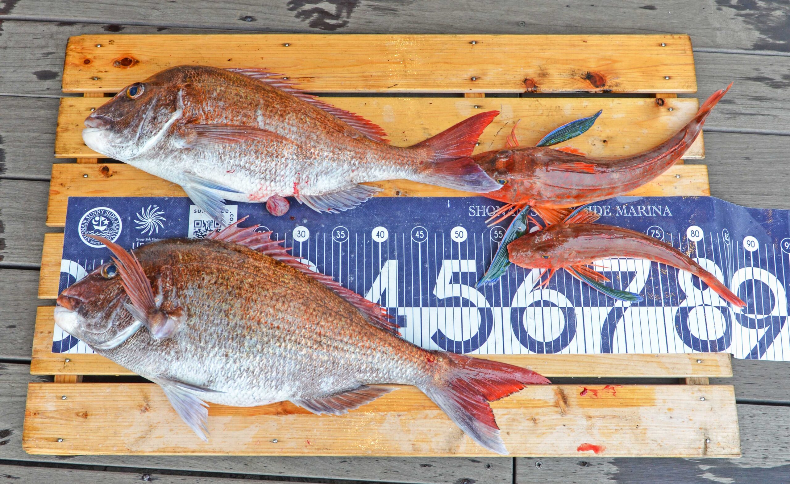 一番大きいマダイは11時ごろ、ほかは13時半ごろの釣果です♪