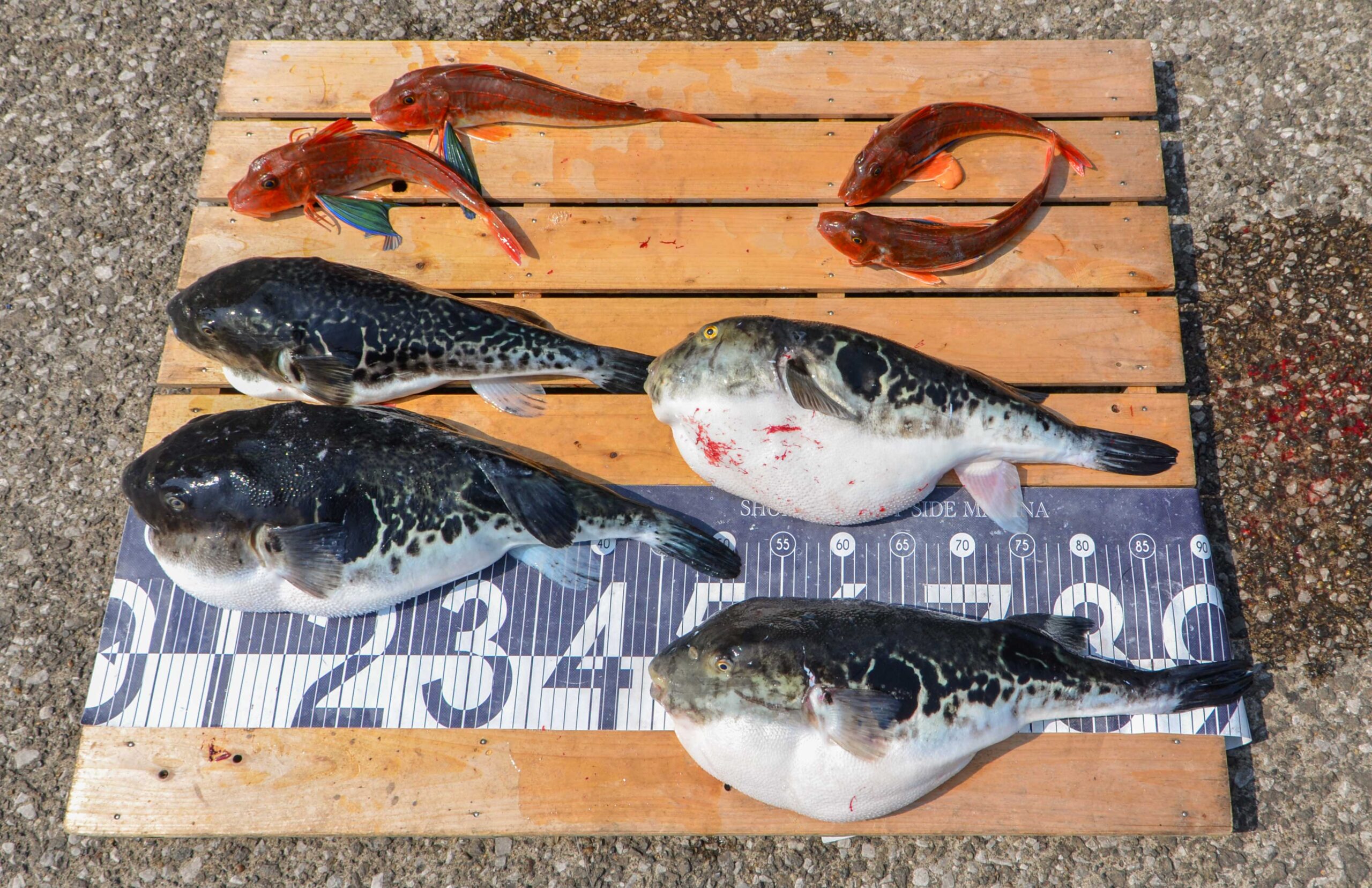 連日よいサイズのトラフグが上がっています♪