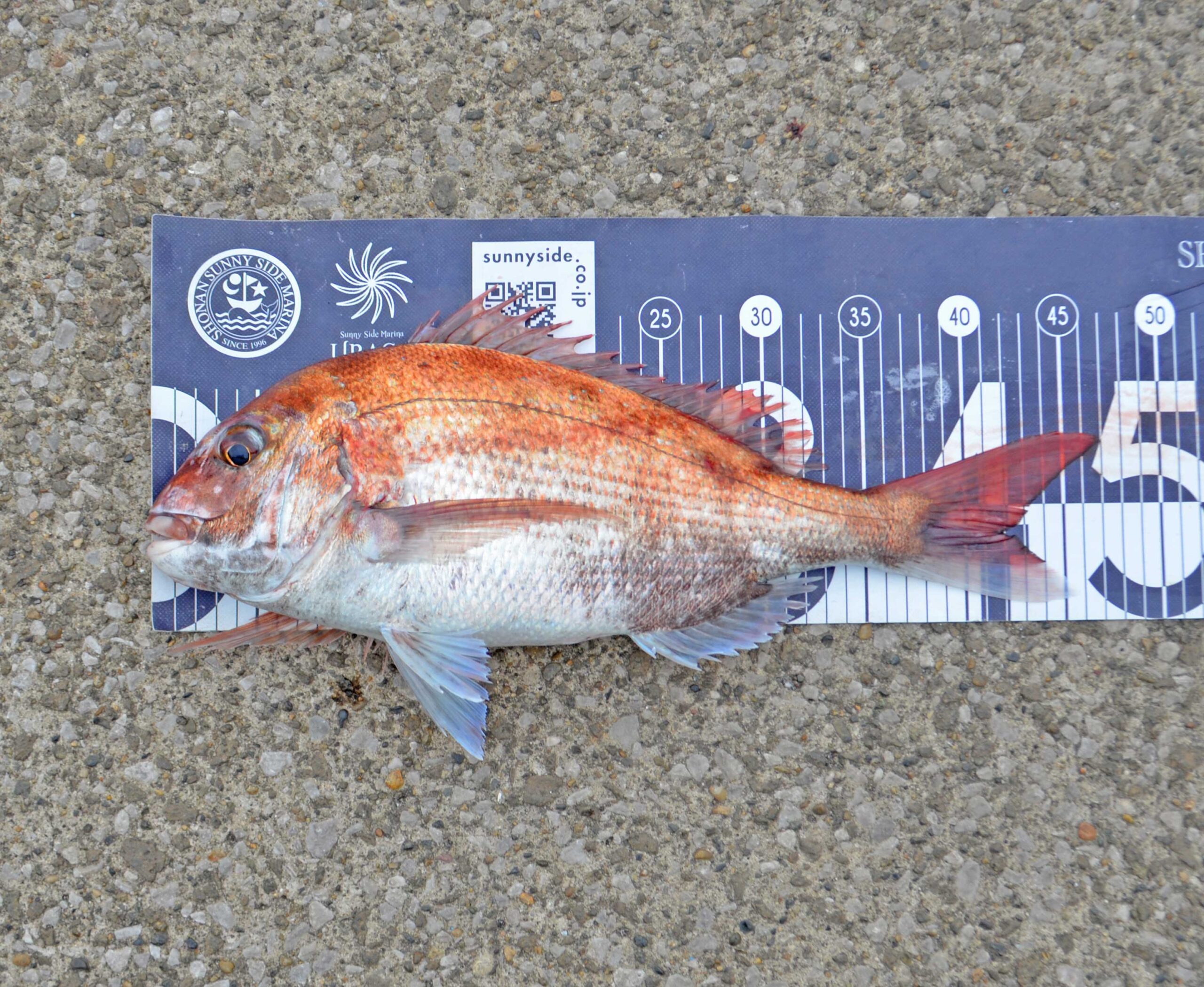 お腹がパンパンのマダイが釣れました。