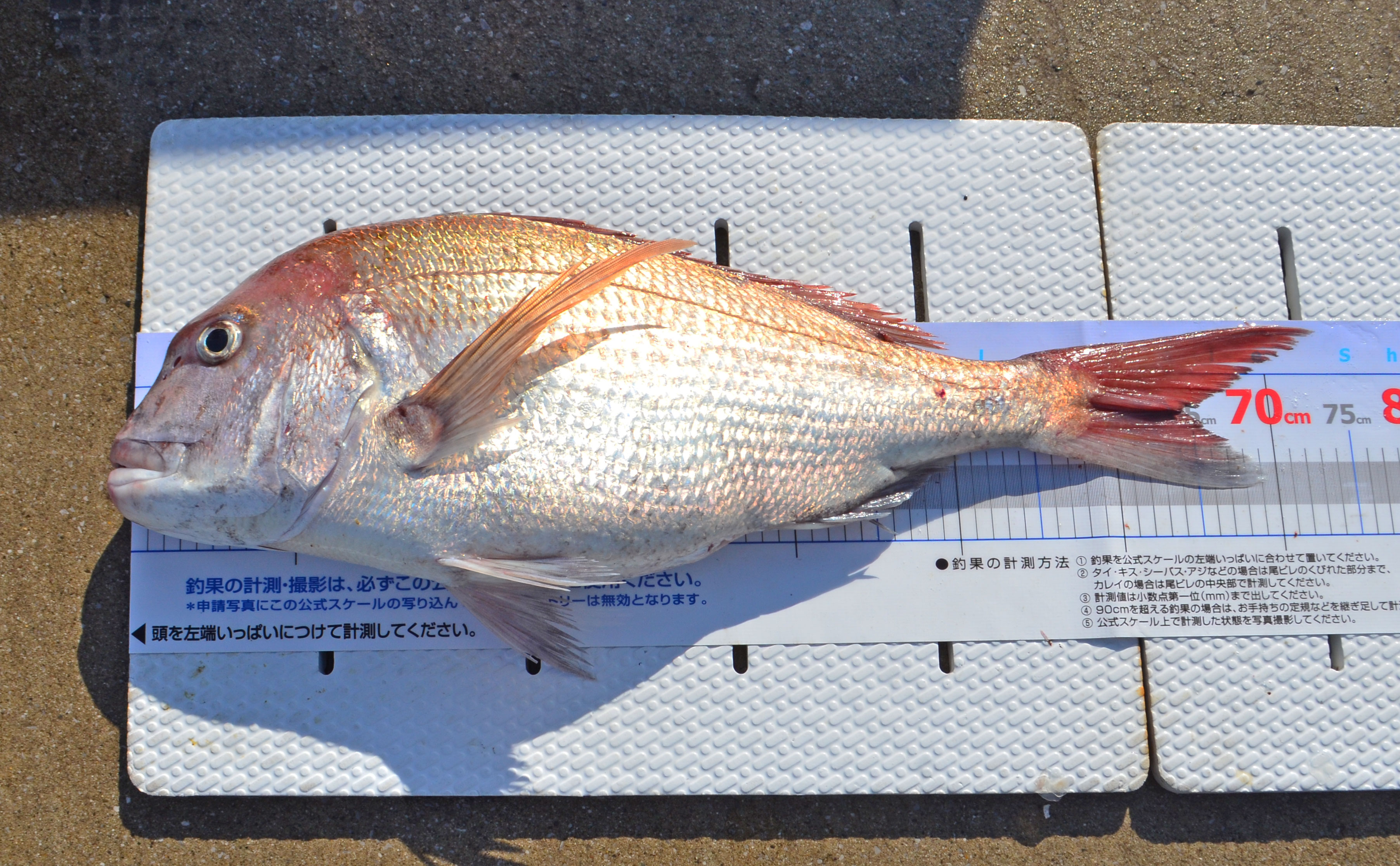 S船長の奥さま、初めてマダイを釣りあげました♪