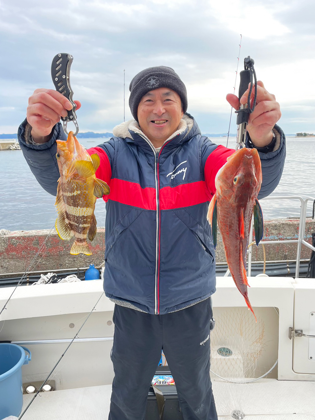 こちらのアマダイは金田湾掛かり根沖の水深50mほど。