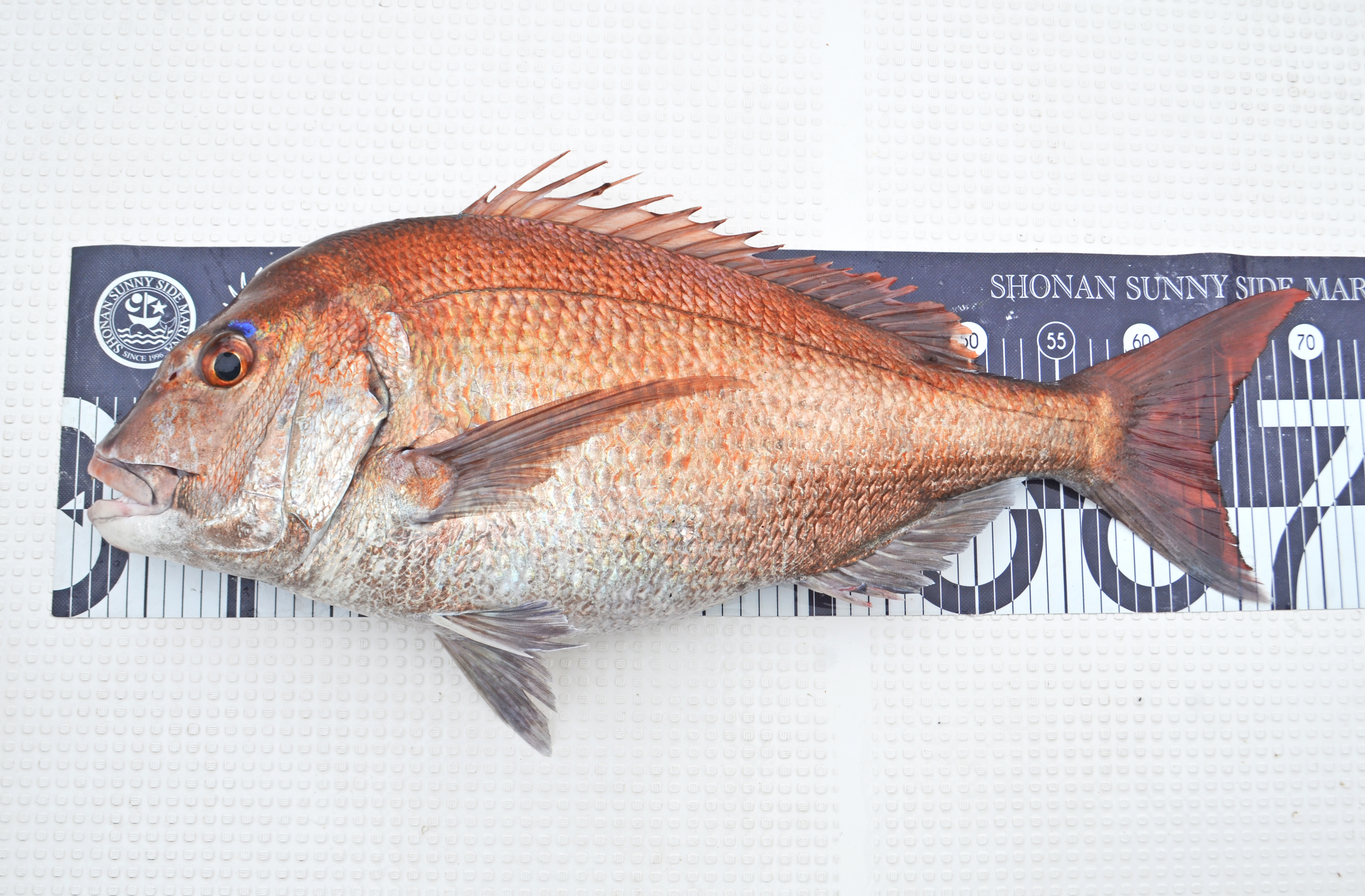 航路出入口の水深30~40m付近で、57cmのマダイがHIT!!