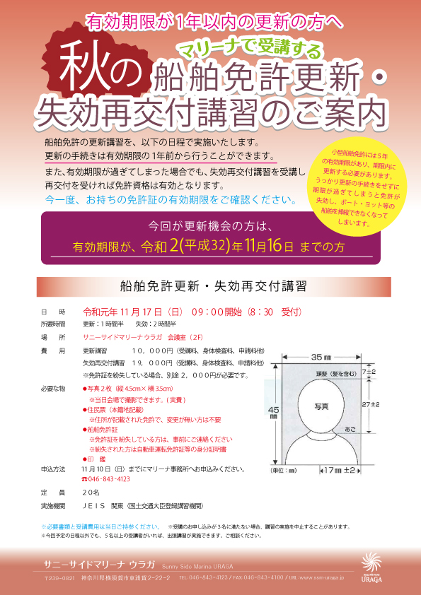 • 『ボート免許更新・失効再交付講習』受講者募集中!