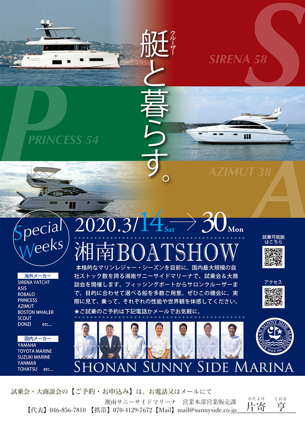 湘南サニーサイドマリーナにて【湘南ボートショー2020】を開催します。