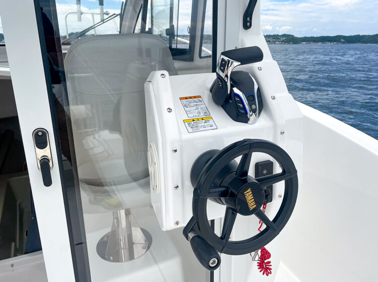 ヤマハの最新技術がもたらす優れた走行性と静止安定性に加えて、前後フロアを効率よく使ったデッキレイアウトがアングラーをしっかりサポート。キャビン後部には、第2の操船ユニットとGPS魚探モニターを特別に装備しました。さらに、スパンカーと併せてポイントキープが楽にできるフィッシング・サポート・リモコンも付いているので、ボートコントロールの煩わしさが大幅に軽減されます。船外機は175馬力にパワーアップ、素早いポイント移動と余裕のあるクルージングを可能にします。深場も楽に狙えるリール電源付き。